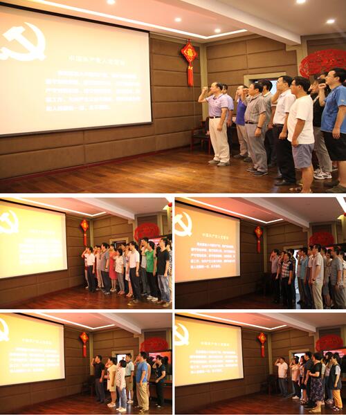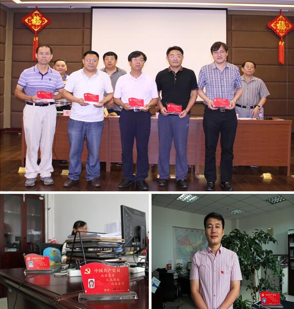 活动中,朱岩、任天志、周其文为各党支部授予了共产党员桌牌和徽章。随后,各党支部在支部书记的带领下高举右手,按照顺序依次面向党旗庄严宣誓,重温了入党誓词,同时所党委成员相应地参加本支部的宣誓活动。