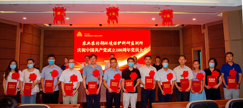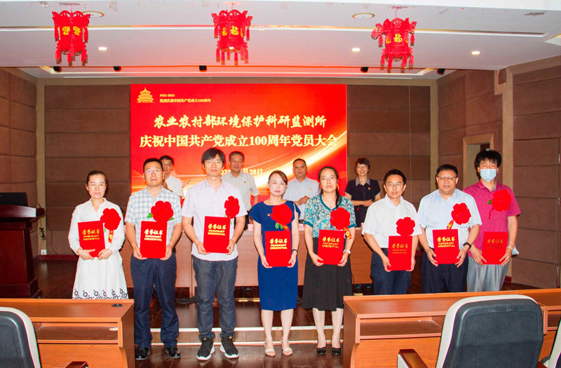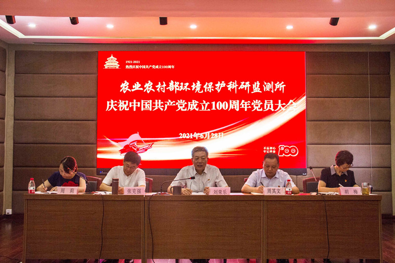 6月28日,农业农村部环境保护科研监测所召开庆祝中国共产党成立100周年党员大会。所党政班子出席会议,受表彰先进典型和全所党员100余人参加会议。党委副书记、纪委书记、工会主席胡梅主持会议,并带领大家重温入党誓词,带领新发展党员入党宣誓。