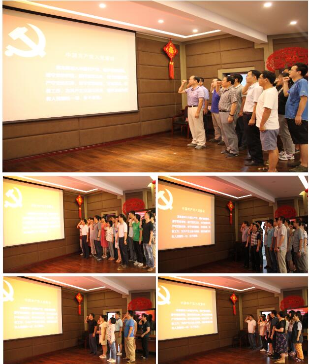 活动中,朱岩、任天志、周其文为各党支部授予了共产党员桌牌和徽章。随后,各党支部在支部书记的带领下高举右手,按照顺序依次面向党旗庄严宣誓,重温了入党誓词,同时所党委成员相应地参加本支部的宣誓活动。