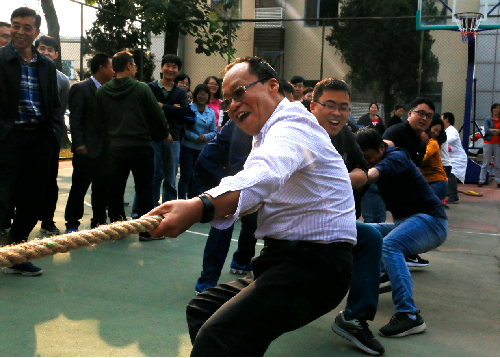 趣味运动会分为团体赛和个人赛,包括拔河、铁人四项赛、跳绳、平板支撑、踢毽子、铅球等6个项目,以党支部为单元组建了5支队伍。经过顽强拼搏和密切合作,第三党支部和第五党支部分别获得拔河和铁人四项赛团体冠军,赵丽霞等5位同志获得个人赛冠军。在师生篮球赛上,学生代表队技高一筹,最终以85比78的大比分战胜导师代表队。