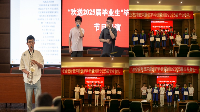 典礼上表彰了2024年度优秀研究生干部、优秀研究生、科技创新奖等荣誉获得者,并为毕业生赠送了环保所精心设计的毕业纪念品。在校生代表为毕业生准备了文艺表演,董禹辛同学演奏了萨克斯曲目《凤凰花开的路口》,赵景洋、李泽政同学演唱了歌曲《海阔天空》,表达了对毕业生的美好祝福。