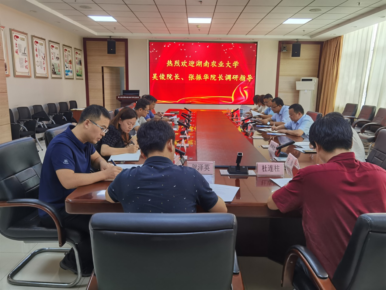 近日,湖南农业大学农学院吴俊院长、资源学院张振华院长一行到环保所调研,并洽谈科技合作。环保所所长、党委副书记熊明民、副所长张克强出席会议。