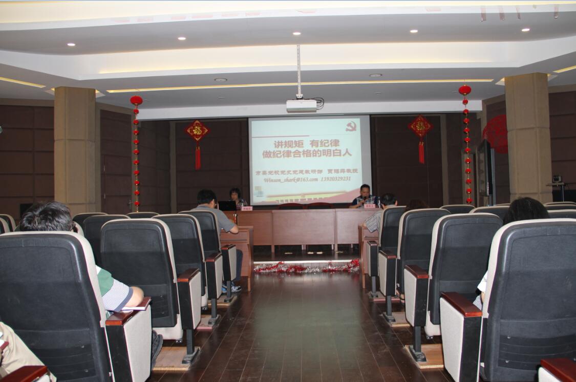 为了开展好第二专题学习教育,6月29日,环保所专门邀请天津市委党校贾锡萍教授围绕“讲规矩、有纪律,做纪律合格的明白人”作专题党课。环保所党委书记朱岩、所长任天志和副所长周其文,以及全体党员近100人参加了活动。专题党课由周其文同志主持。
