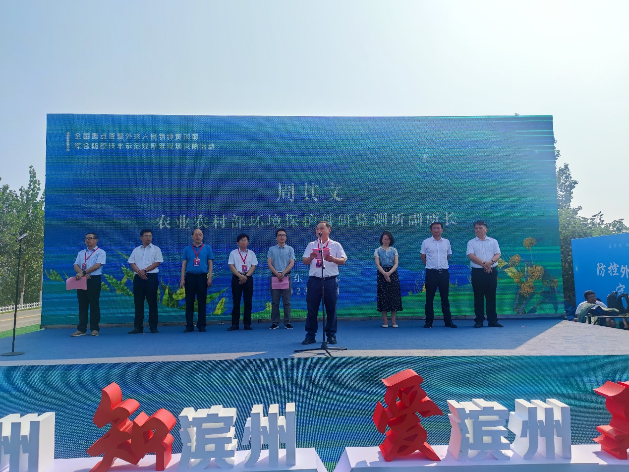 近日,环保所在山东省滨州市举办了北方重点管理外来入侵物种黄顶菊防控技术交流、综合防控示范区观摩及黄顶菊现场灭除活动。农业农村部科教司资环处副处长李景平、农业农村部部生态总站资源保护处处长黄宏坤、山东省农业农村厅二级巡视员姜卫良、滨州市副市长毕志伟、惠民县县长许健以及环保所副所长周其文出席了活动。