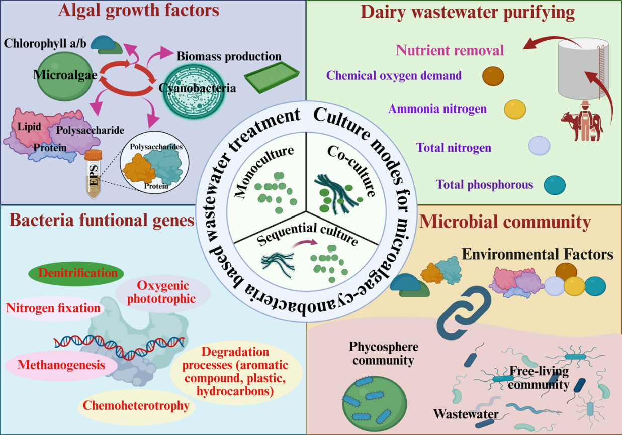 近日,农业农村部环境保护科研监测所养殖业污染防治创新团队系统评估了单一培养、共培养及顺序培养等不同微藻培育策略对畜禽废水的处理效能,为开发高效实用的畜禽废水处理新技术提供依据。相关研究成果发表于《生物资源技术(Bioresource Technology)》。
