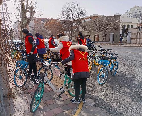 1月15日,农业农村部环境保护科研监测所开展“创建文明城市、保护环境”志愿服务活动,组织综合服务党支部党员走到街道、地铁站等地,将停放杂乱的共享单车集中放置、摆放整齐。