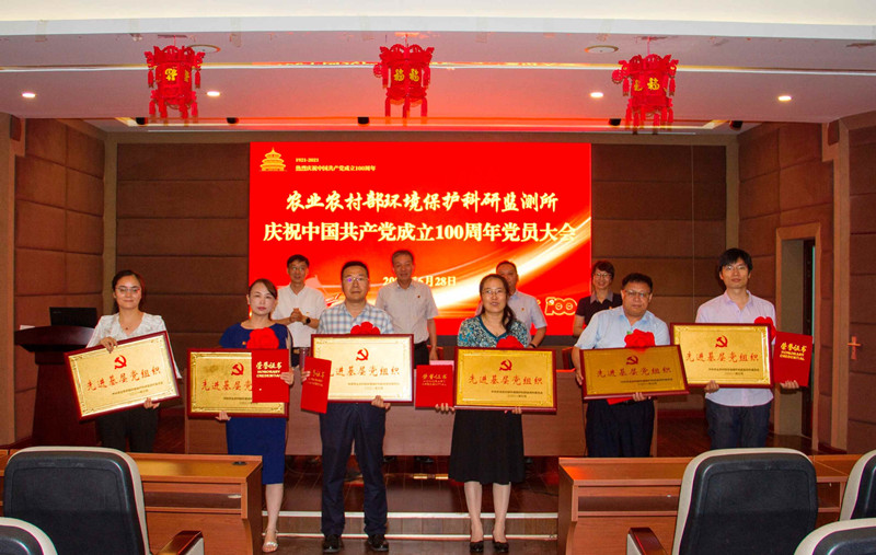 6月28日,农业农村部环境保护科研监测所召开庆祝中国共产党成立100周年党员大会。所党政班子出席会议,受表彰先进典型和全所党员100余人参加会议。党委副书记、纪委书记、工会主席胡梅主持会议,并带领大家重温入党誓词,带领新发展党员入党宣誓。