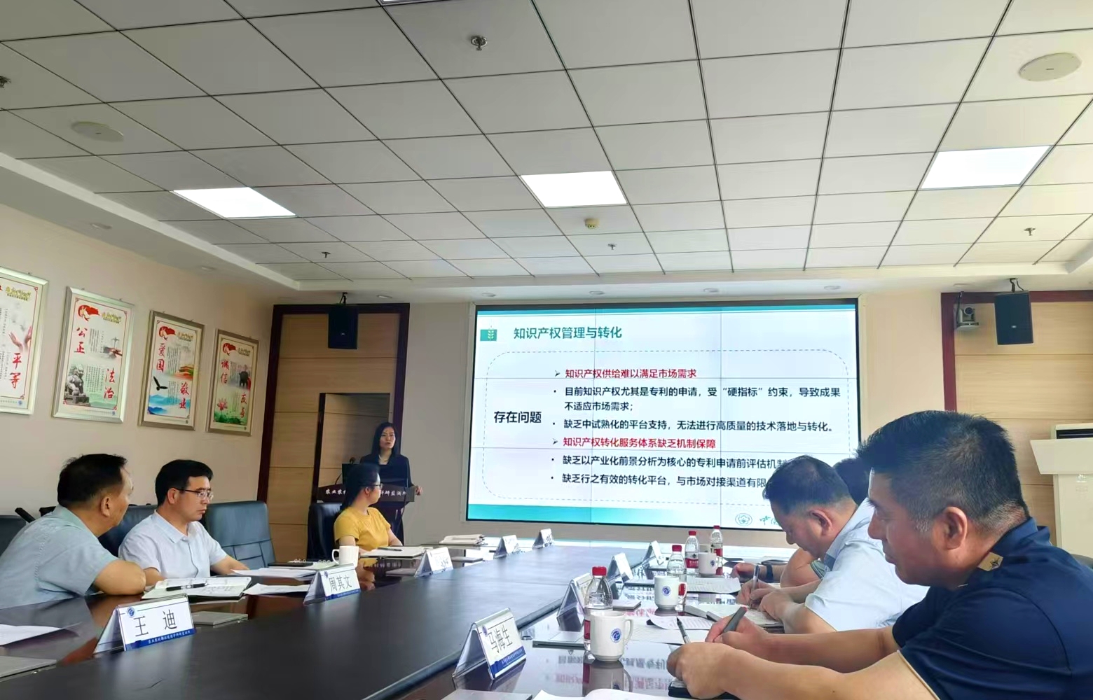 7月22日,天津市知识产权局副局长郭文强一行到环保所调研知识产权与专利盘活工作,环保所党委委员、副所长周其文出席并主持会议。