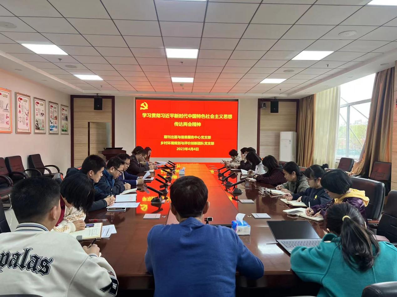 活动共两个阶段。第一阶段,联合开展“学习宣传贯彻习近平新时代中国特色社会主义思想 传达学习全国两会精神”专题学习活动。期刊出版与信息服务中心党支部书记王农领学习近平总书记在“学习贯彻习近平新时代中国特色社会主义思想主题教育工作会议”上的重要讲话精神,传达环保所2023年第1次党委理论学习中心组(扩大)学习会暨全国两会精神专题学习会精神;支部委员领学中国农业科学院传达学习全国两会精神干部大会精神;参会人员围绕期刊出版与信息服务中心创建“乡村环境规划与管理”专刊等相关事宜展开交流讨论,并表示要立足工作岗位,聚焦主责主业,将理论学习成果转化为攻坚克难、干事创业的强大动力。