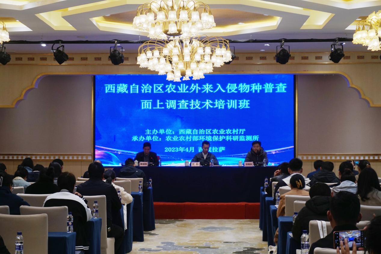 为加快推进西藏农业外来入侵物种普查面上调查工作,进一步提升全区普查工作人员技术水平,做好普查技术支撑与服务,4月26日至4月27日,在西藏自治区农业农村厅的统一安排下,环保所作为西藏自治区农业外来入侵物种普查面上调查技术支撑牵头单位,在拉萨组织举办了西藏自治区农业外来入侵物种普查面上调查技术培训班。西藏自治区农业农村厅党组成员、副厅长罗丹,环保所所长、党委副书记熊明民出席会议,会议由西藏自治区农业农村厅科教处处长张耀峰主持。