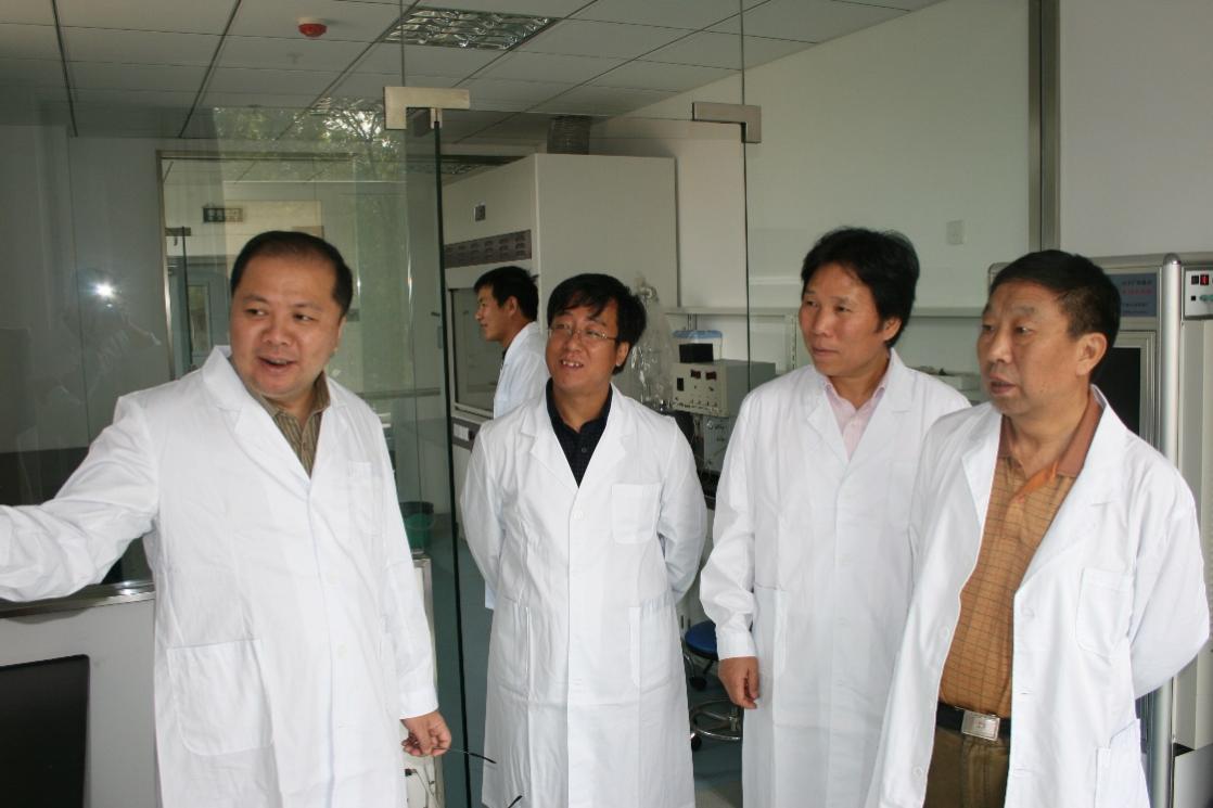 2005年5月,所长王小虎(左一)陪同天津市副市长孙海麟视察环保所