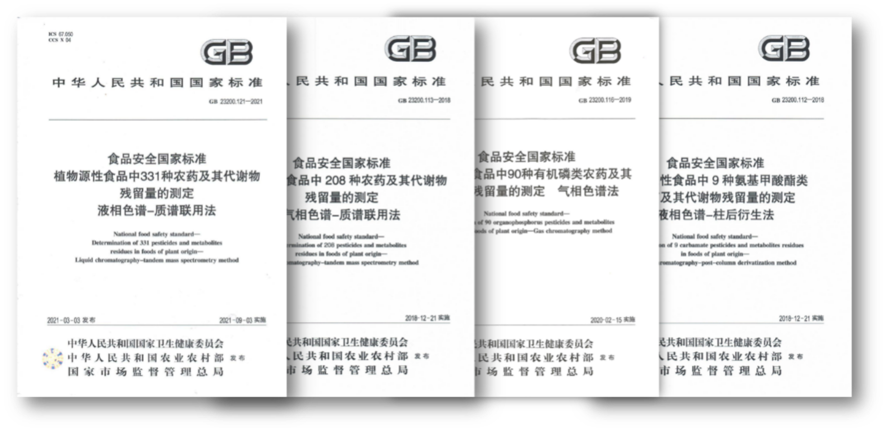 在农药残留检测方面,开发建立了基于色谱、色谱串联质谱、高分辨质谱三级覆盖全部植物源性食品中500余种农药的高通量检测方法体系,已转化为《植物源性食品中208种农药及其代谢物残留量的测定 气相色谱-质谱联用法》(GB23200.113-2018)、《植物源性食品中9氨基酸脂类农药及其代谢残留量的测定 液相色谱-柱后衍生法》(GB23200.112-2018)、《植物源性食品中90种有机磷类农药及其代谢物残留量的测定 气相色谱法》(GB 23200.116-2019)和《植物源性食品中331种农药及其代谢物残留量的测定 液相色谱-质谱联用法》(GB 23200.121-2021)等4项强制性食品安全国家标准。在农业环境及重金属检测方面,开发建立了应急监测、形态检测、环境评价等技术方法,形成了《农产品产地环境污染应急监测技术规范》(NY/T 4154-2022)、《无公害农产品 产地环境评价准则》(NY/T 5295-2015)、《农产品产地土壤重金属镉有效态提取梯度扩散薄膜(DGT)法》(DB52/T 1465-2019)等系列农业行业和地方标准。这些农业污染物及环境检测技术,为政府加强农产品质量安全监管提供了技术支撑。
