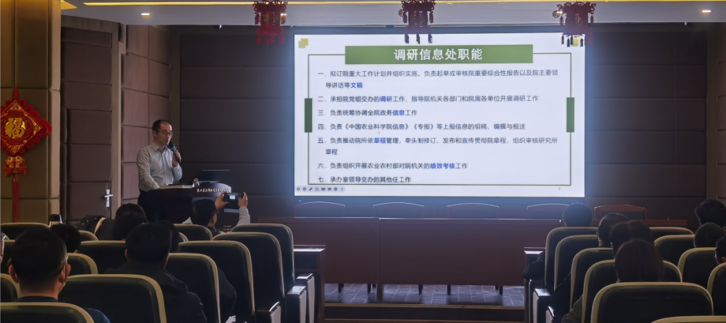 徐雷鸣围绕信息报送和文稿写作作报告,详细讲解了中国农业科学院信息报送工作机制以及信息、文稿的选题角度、写作技巧、报送流程等,内容充实、技能实用。