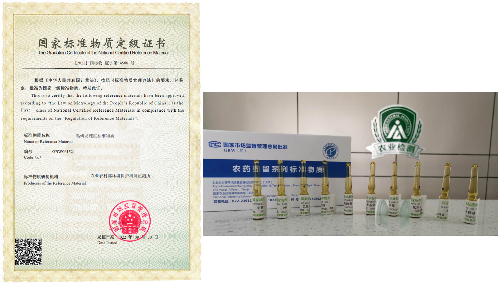 标准物质研制研制国家一级和二级农药标准物质和土壤、农产品基体标准物质,为农业、食品、环境以及科研等多个领域的监管和科学研究提供了质量控制技术保障。