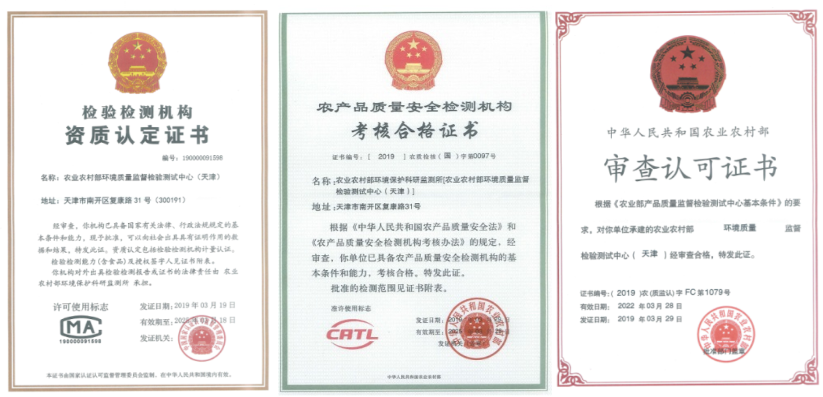农业农村部环境质量监督检验测试中心(天津)(以下简称“中心”)是依托农业农村部环境保护科研监测所成立的部级质检机构,于1997年首次通过国家计量认证和农业部审查认可,2012年首次通过食品检验机构资质认定评审,2017年获批国家农业检测基准实验室(农药残留)。