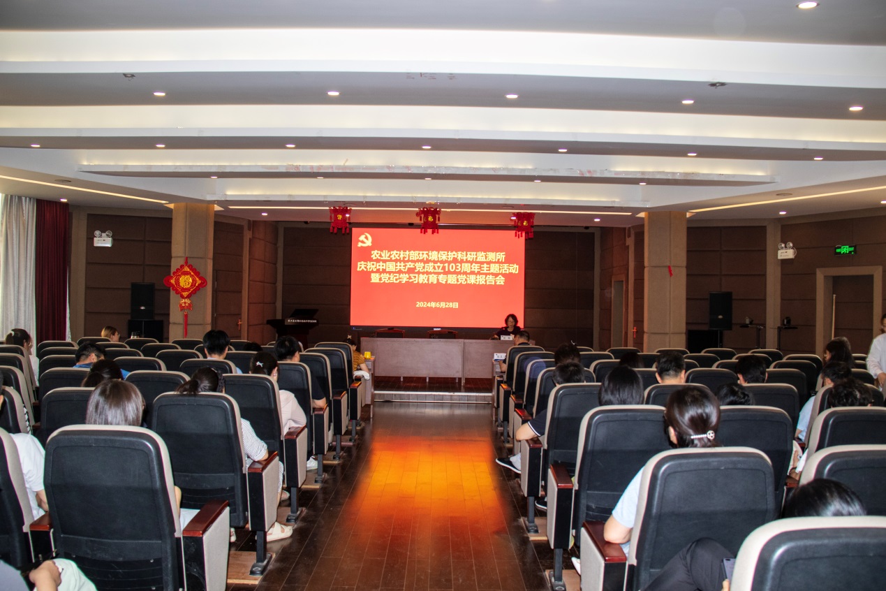 6月28日,农业农村部环境保护科研监测所举办庆祝中国共产党成立103周年主题活动暨党纪学习教育专题党课报告会。