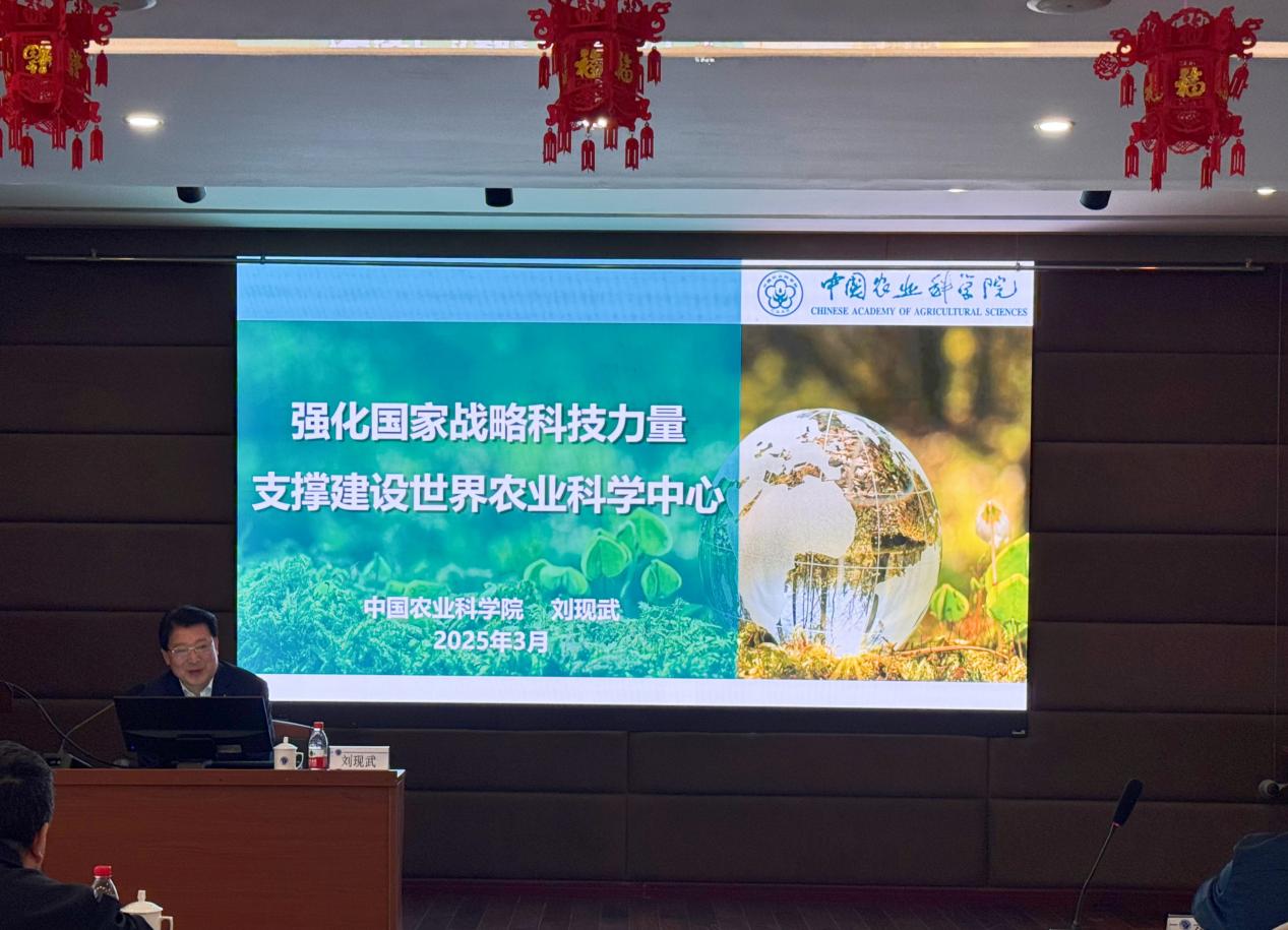 刘现武围绕“强化国家战略科技力量,支撑建设世界农业科学中心”主题,简要介绍了我院“十五五”发展规划编制工作情况,解读了世界农业科学中心主要特征与转移路径,我国建设世界农业科学中心的时代要求与基础以及支撑我国建设世界农业科学中心的思考。