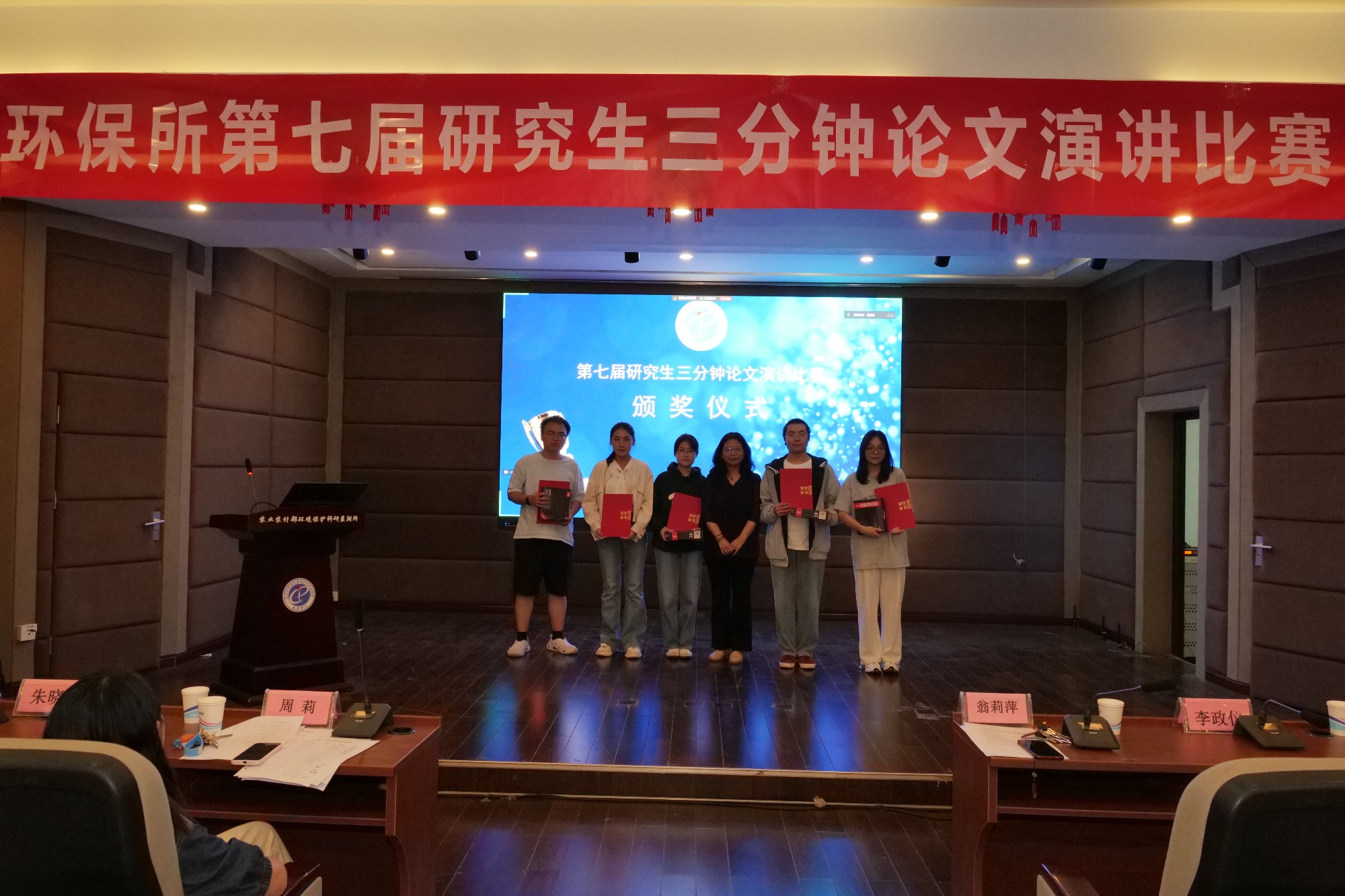 60余位选手围绕自选课题依次自我演讲展示。评委组从演讲者的选题意义、思维逻辑、语言表达以及个人综合素质等多个维度进行全面评价。评选出特等奖1名,一等奖5名,二等奖10名,三等奖15名。此次比赛的特等奖获得者将代表环保所赴中国农业科学院研究生院参加决赛。