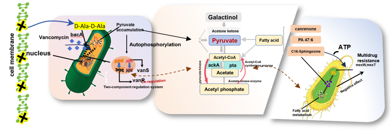本研究发现土壤有机碳矿化率与ARGs丰度动态变化密切相关,其中高有机碳矿化有利于多重耐药类ARGs的产生;微生物生活史策略分析表明高有机碳输入能够驱动微生物由胁迫耐受性向高抗性和强适应性进化;多组学联合分析明确了丙酮酸向乙酰辅酶A转化为乙酸盐的碳代谢过程是参与调控微生物耐药进化的主要路径;基于基因编辑技术对与耐药演化密切相关的关键功能基因进行敲除验证,发现碳转化相关基因ackA和pta为调控万古霉素和多重耐药类细菌耐药发展的关键功能基因。研究成果系统揭示了微生物介导的有机碳转化协同调控细菌耐药进化的关键机制与主要代谢途径,为农业管理中平衡土壤有机碳转化和抗生素耐药污染提供了理论支持。