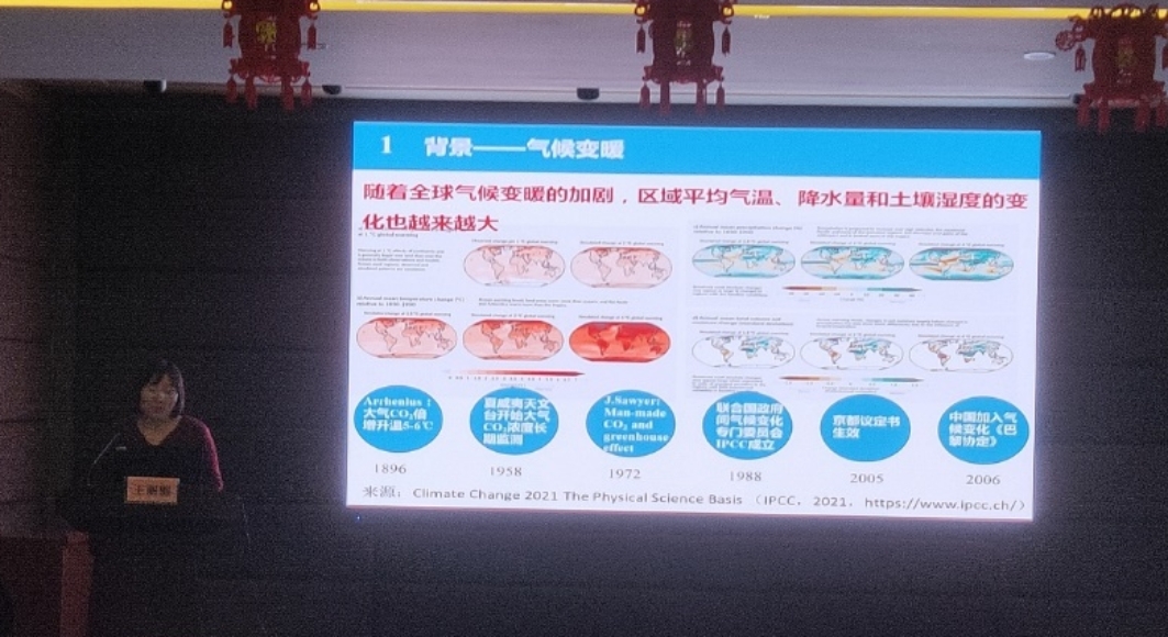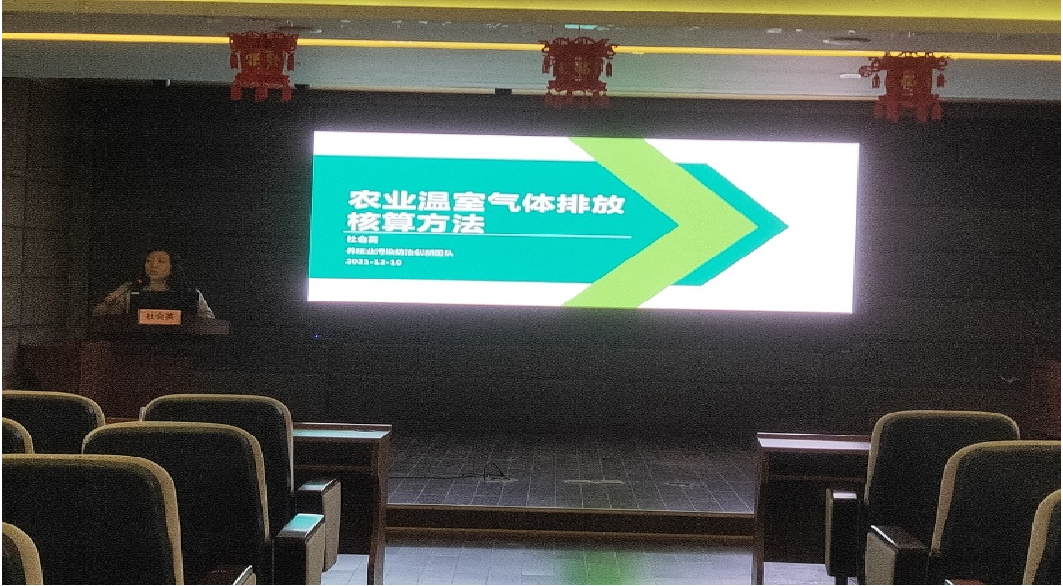 杜会英高级工程师作了题为《农业温室气体排放核算方法》的报告,报告首先向同学们介绍了碳达峰碳中和提出的相关背景,接着阐述了农业温室气体的范畴及其核算方法,最后提出了针对农业温室气体减排固碳的相关对策。