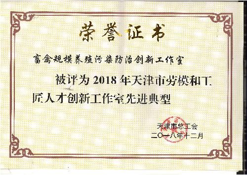 环保所畜禽规模养殖污染防治创新工作室获2018年天津市劳模工作室先进典型