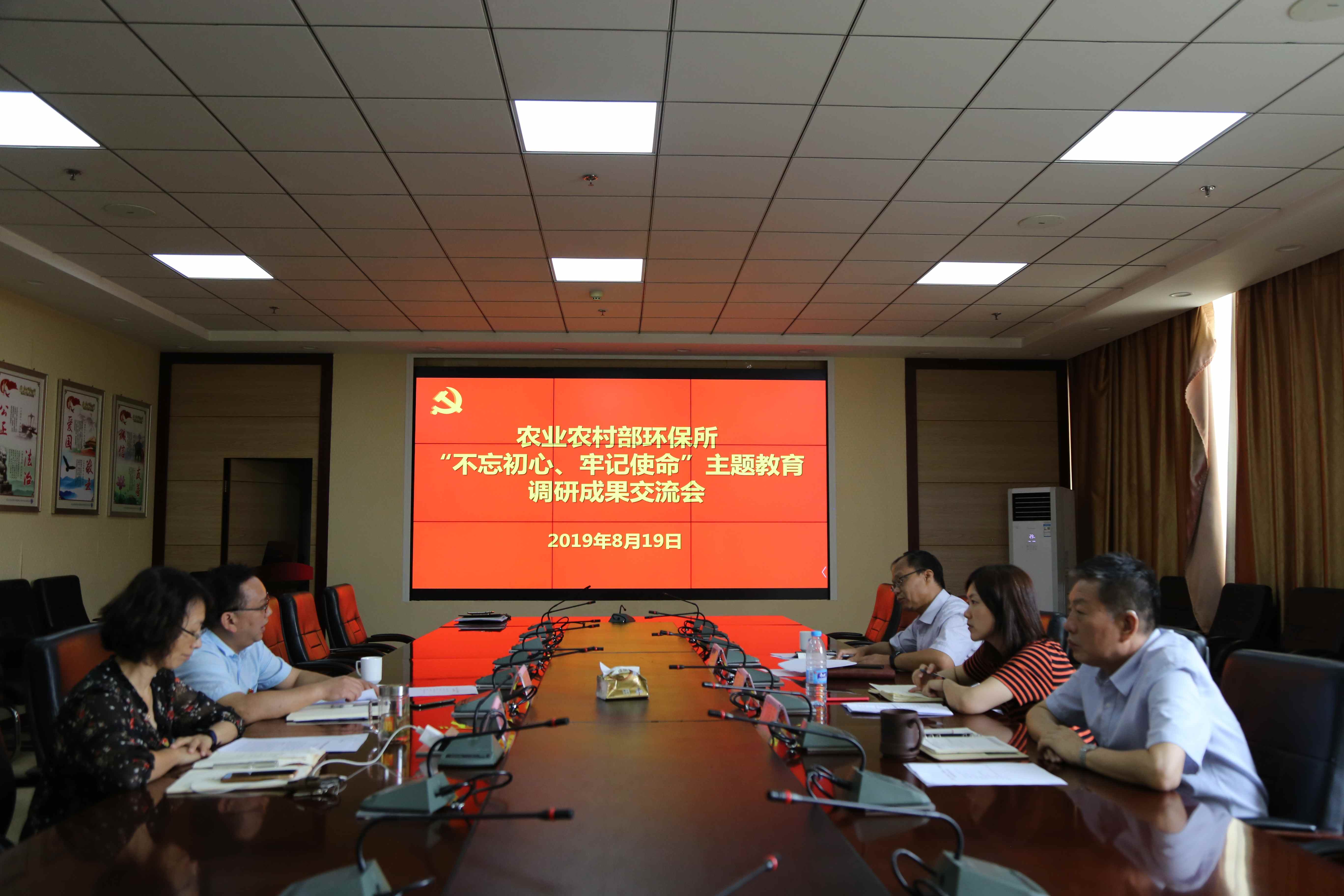 8月19日,农业农村部环境保护科研监测所召开“不忘初心、牢记使命”主题教育调研成果交流会。中国农业科学院“不忘初心、牢记使命”主题教育第十指导组殷娟同志到会指导。环保所所长刘荣乐,党委委员、副所长周其文、张克强,党委副书记、纪委书记胡梅出席会议。会议由环保所党委书记、副所长张国良主持。