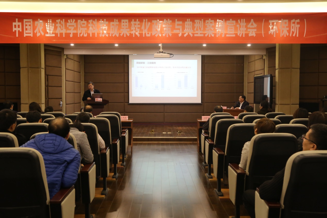 按照中国农业科学院关于加大科技成果转化政策宣讲和经验交流的要求,11月13日院科技成果转化政策与典型案例宣讲会在我所召开,讲组成员有加工所所长王凤忠、院园区基地管理处副处长王启现、植保所副所长沈银书、植保所成果转化处处长高玉林、植保所中保集团副总赵宜君、水稻所成果转化与服务处处长倪建平、加工所成果转化处副处长杨洋、环发所旱作节水室科研骨干董闫闫。宣讲会由环保所副所长周其文主持。