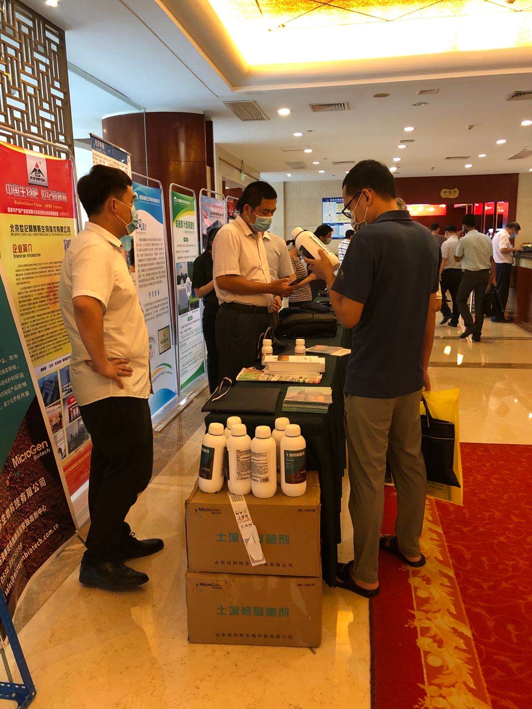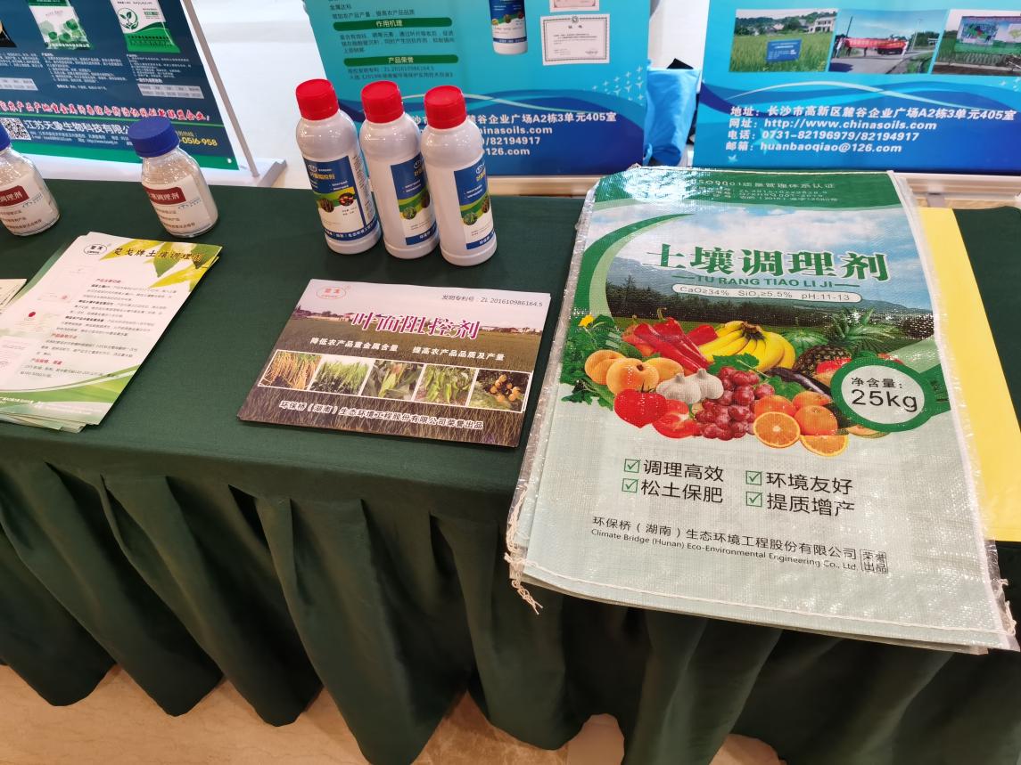 同时,联盟成员单位在会场设立展区,通过展板、实物、宣传册等多种方式展示了叶面阻控剂、土壤调理剂、微生物菌剂等10余种土壤修复产品,受到参会代表的广泛关注。