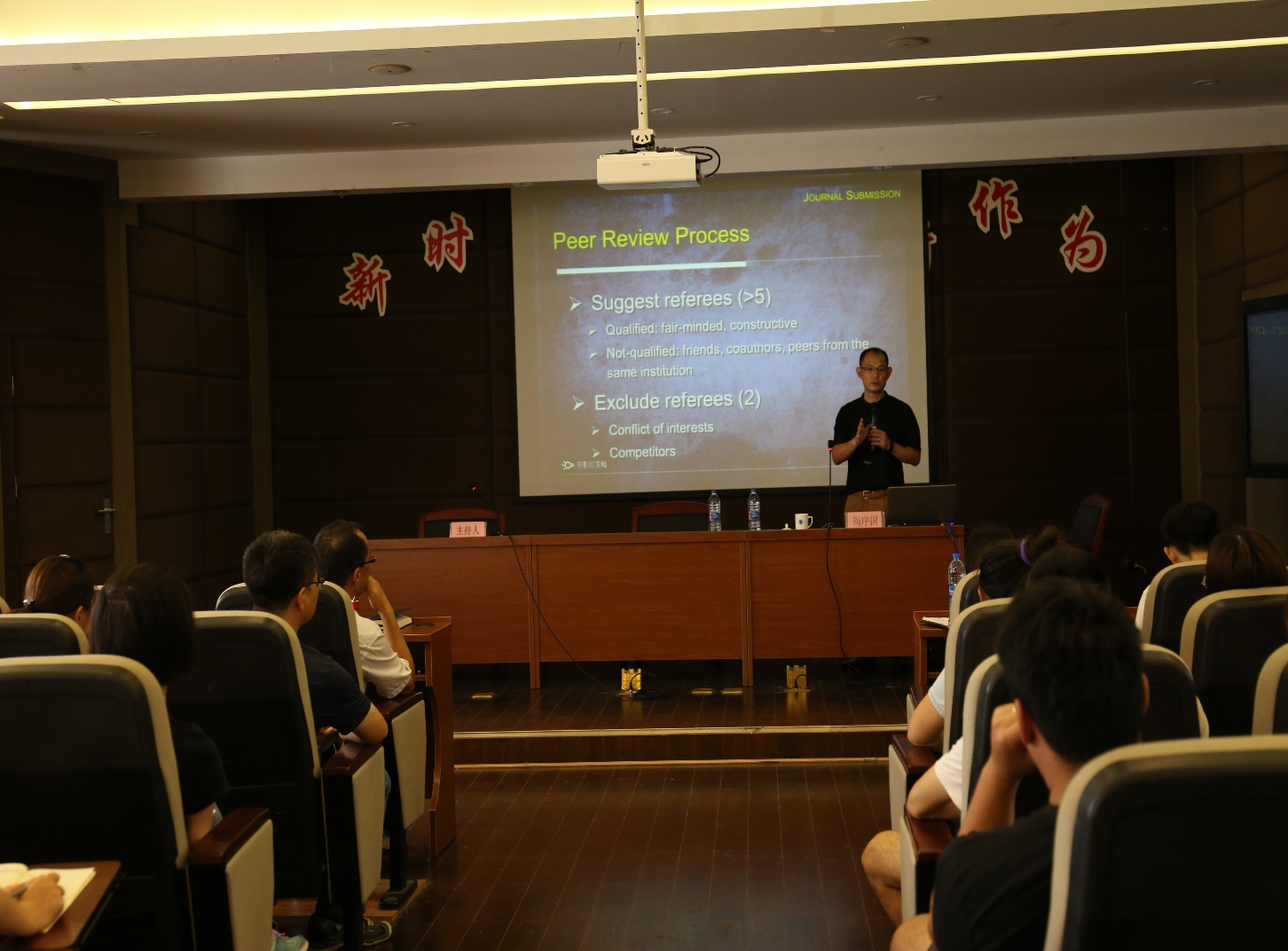 周序国作了题为“科研论文写作的训练与逆向写作法”的专题报告。他向大家分享了自己多年来在海外从事科研工作总结出的“科研论文逆向写作法”,分别从论文作者、评审专家和期刊编辑的视角,提出了论文投稿过程中的注意事项和技巧建议,重点就论文前沿、研究方法、结论讨论和参考文献等方面的撰写及其相互之间的关联作了详细讲解。他还结合自身科研工作经历,就如何坚定科研信念、潜心科研攻关、保持良好心态等,与大家交流了切身体会。报告结束后,周序国与大家进行了互动交流,耐心细致地解答了大家在科研工作和论文写作中遇到的各类困惑。报告会现场气氛异常活跃,洋溢着广大科技工作者的聪明才智和蓬勃朝气,会场不时爆发出阵阵掌声。大家一致表示,报告开阔了眼界,启迪了思维,交流了思想,使人如沐春风、受益匪浅。