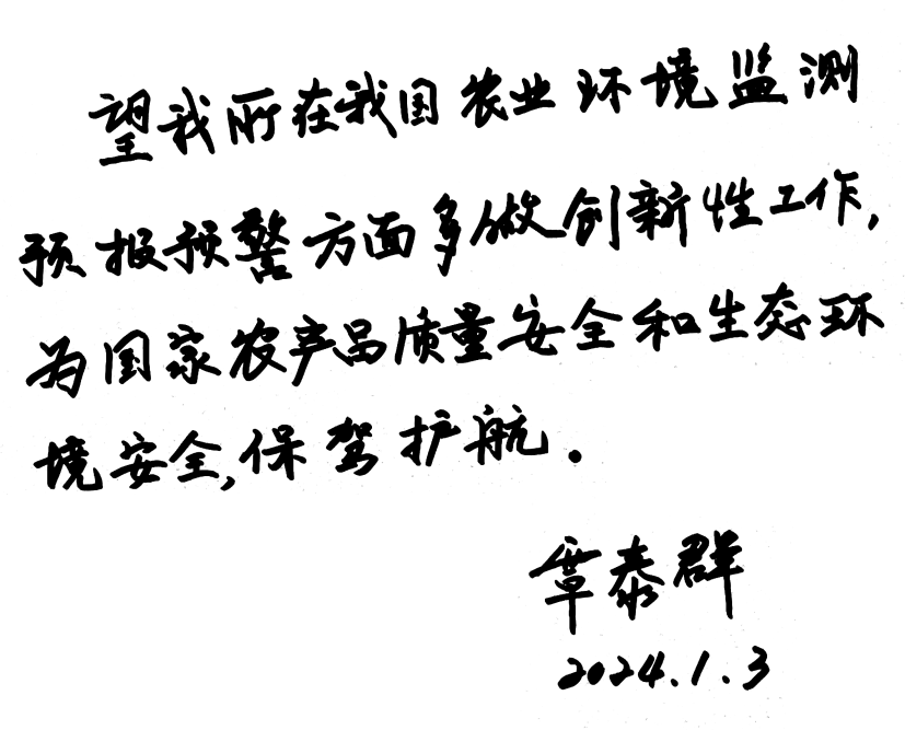 最后,真诚地希望我所在我国农业环境监测预报预警方面多做创新性工作,为国家农产品质量安全和生态环境安全保驾护航。