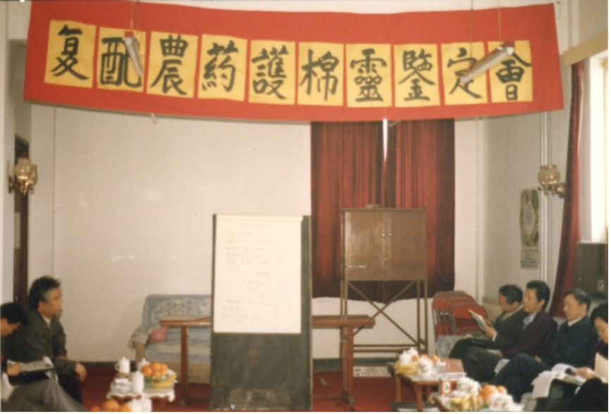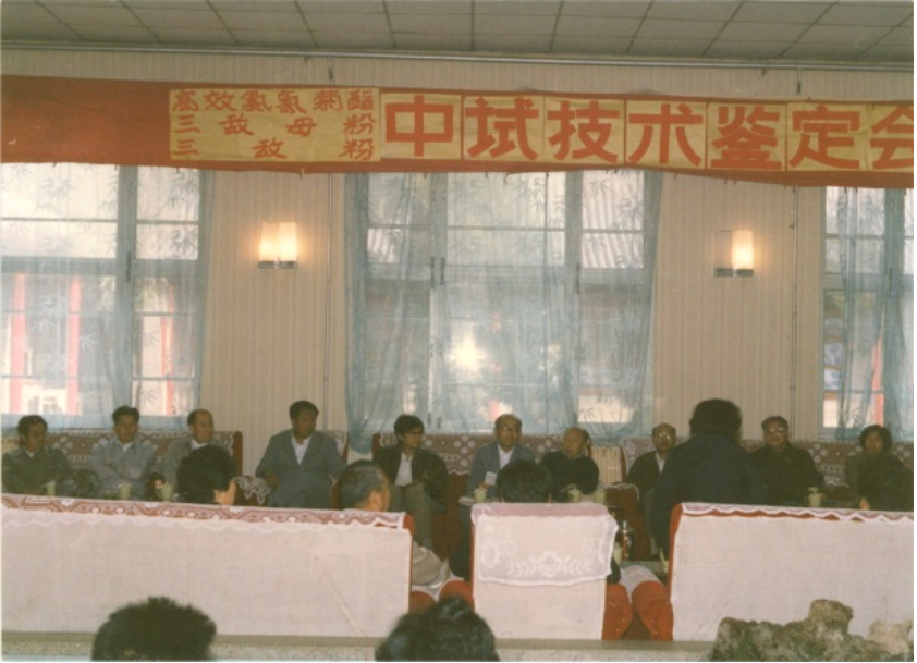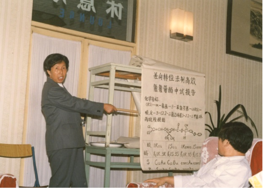 图4 1990年9月19日在河北涿州召开高效氯氰菊酯中试技术鉴定会,课题组长田淑贤做中试报告