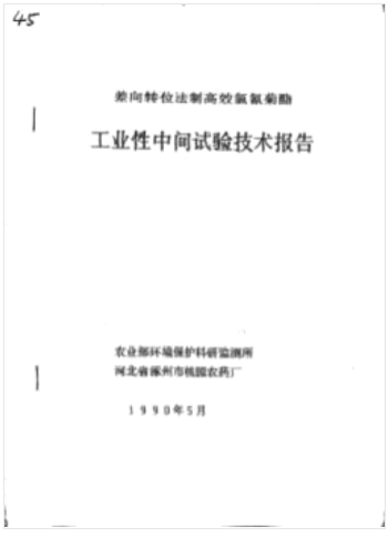 图3 差向转位法制高效氯氰菊酯中间试验技术报告、成果鉴定书及发明专利证书