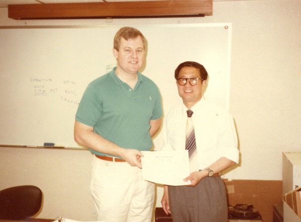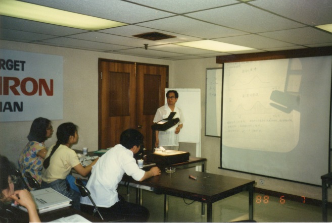 图2 1986年和1988年覃泰群在香港贝克曼公司讲课,交流氨基酸分析技术