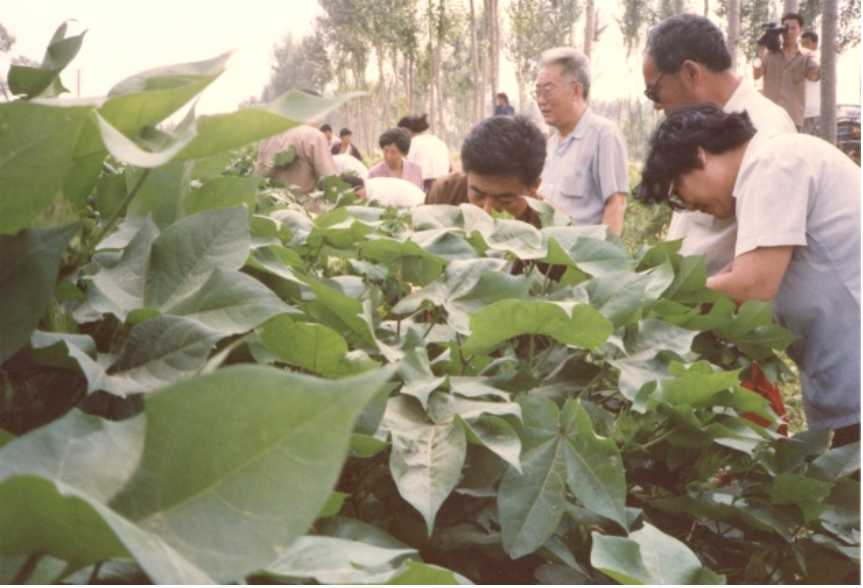 图5 1994年8月复配农药护棉灵鉴定会(左),护棉灵评委在现场调查(右)