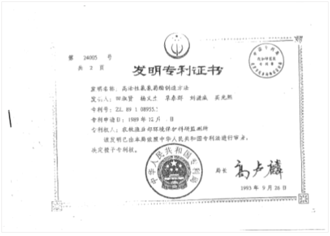 1988—1992年,与课题组组长田淑贤等人,共同主持完成了“差向转位法制高效氯氰菊酯新工艺研究”,研发了一种高效氯氰菊酯生产的新工艺路线,并获得了国家发明专利(专利号:ZL 89 10108955.1),在山东、河北、广东、安徽、天津等省市进行技术转让,实现工业化生产。氯氰菊酯是一种农药,1990年前后依赖从美国进口,每吨价格在40 万元左右。氯氰菊酯原油是八种异构体的混合物,其中高效异构体只有两种,包括其中对映体在内仅占总酯的36%~42%。采用差向转位法制高效氯氰菊酯的新工艺路线,可使原药中的高效体含量提高到90%以上。此工艺技术先进、高效体回收率高、催化剂便宜易得、生产周期短等特点,为国家节省大量外汇。有关氯氰菊酯的检测分析方法开发上,当时用填充柱气相色谱法,可做氯氰菊酯总酯含量分析,但不能将各异构体分离开,测得各自含量。用反相高效液相色谱法,也不能将氯氰菊酯的异构体分离开。用正相高效液相色谱法可以将氯氰菊酯分离为四个色谱峰,每个峰包含两个对映体,并依此分别测定出四对对映体各自占总酯的比例及在样品中的含量,但用正己烷为主要成分的流动相价格昂贵,我们研究开发以分析纯石油醚为主要成分的流动相,将氯氰菊酯原药分离为四个色谱峰,分别测定它们在原油及高效体产品中的含量,同时能测定出氯氰菊酯总酯含量。用开发的检测技术测定已知氯氰菊酯含量的样品,准确度测定绝对误差<±1.0%,回收率在99.0%~101.0% 之间。对差向转位法制高效氯氰菊酯产品中的高效体进行多次精密度测定,标准偏差<0.90%,相对标准偏差≤0.96%。氯氰菊酯农药对棉花、果树的鳞翅目害虫防治效果很好,专利转化后经济效益比较显著,给所里争取了很多横向开发的经费。