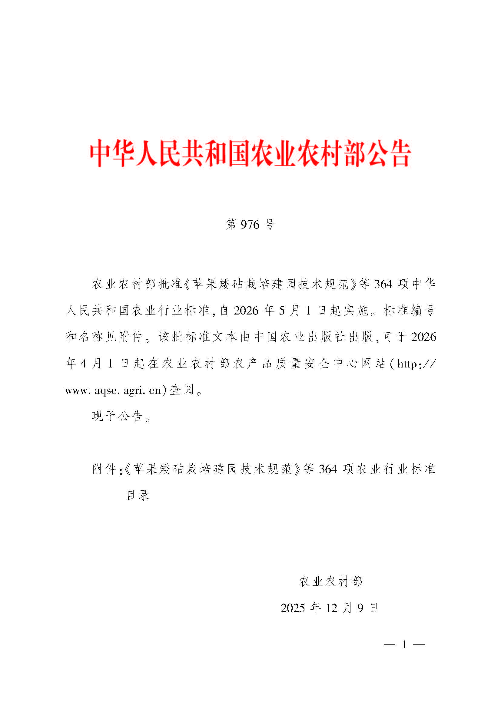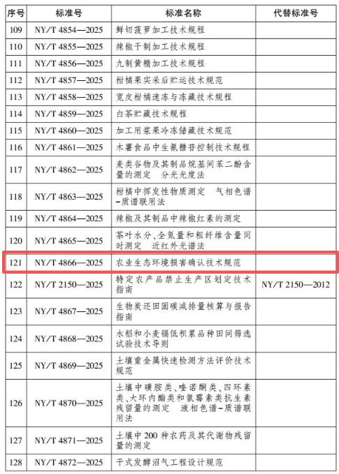近日,环保所牵头起草的农业行业标准《农业生态环境损害确认技术规范》在农业农村部第976号公告中发布,标准号为NY/T 4866-2025,该标准自202651日起实施。