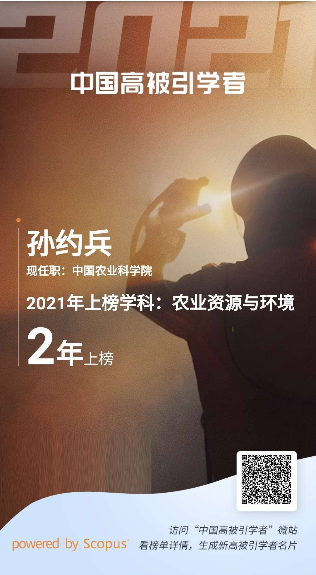 孙约兵研究员入选2021年“中国高被引学者”榜单