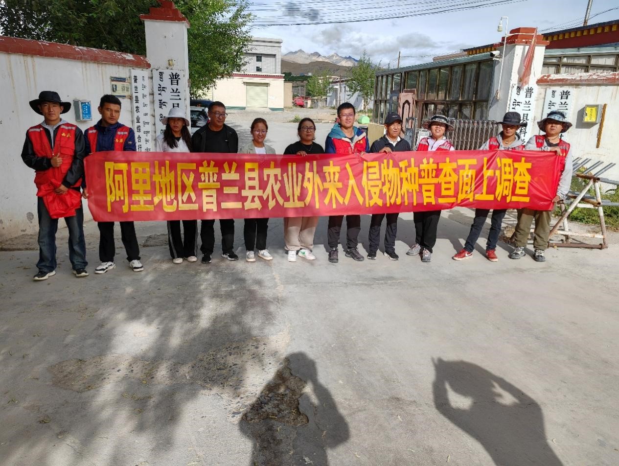 环保所专家与普兰县、乡两级农牧技术人员深入农区对西藏自治区阿里地区普兰县全部乡镇8个涉农行政村(社区)的农业外来入侵植物、病虫害以及入侵水生动物等情况进行了实地调查。此次农业外来入侵物种普查严格遵照《农业外来入侵物种普查面上调查技术规程》《西藏自治区农业外来入侵物种普查实施方案》,并参考《西藏自治区农业外来入侵物种普查参考清单》进行实施。该区域地处喜马拉雅山南侧,平均海拔4000米,技术人员不畏艰苦,共布设49个踏查点,累计踏查面积近1000亩,标准样地8块,摸清了西藏自治区普兰县农业外来入侵物种的种类、数量、分布范围、发生面积和危害程度。