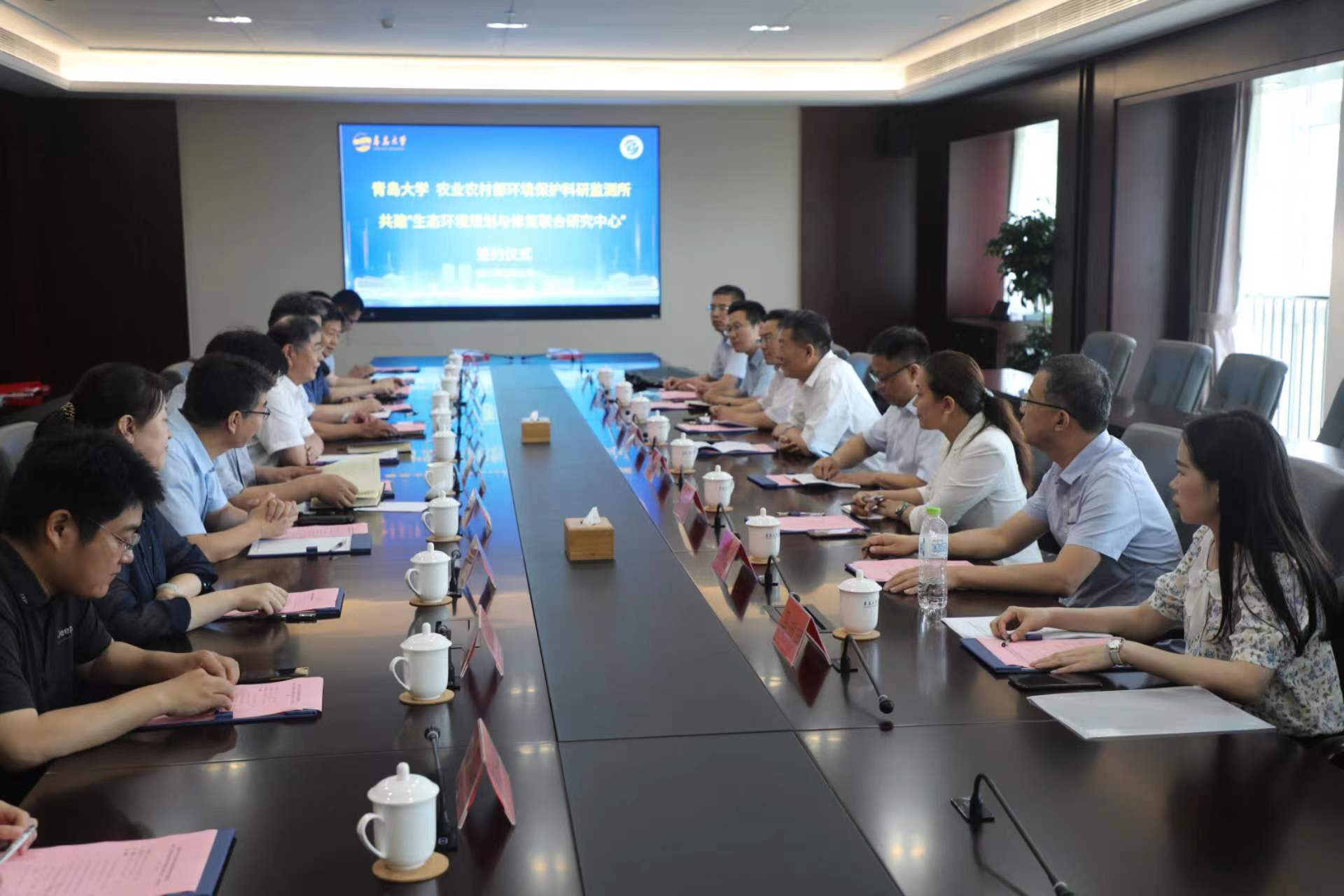 会上,科研处副处长、乡村环境规划与评价创新团队首席师荣光和青岛大学科技处处长李荣贵分别介绍了双方科研情况。我所综合办公室(人事处)处长王农与青岛大学环境科学与工程学院院长佘希林共同签订《青岛大学 农业农村部环境保护科研监测所共建“生态环境规划与修复联合研究中心”合作协议》。