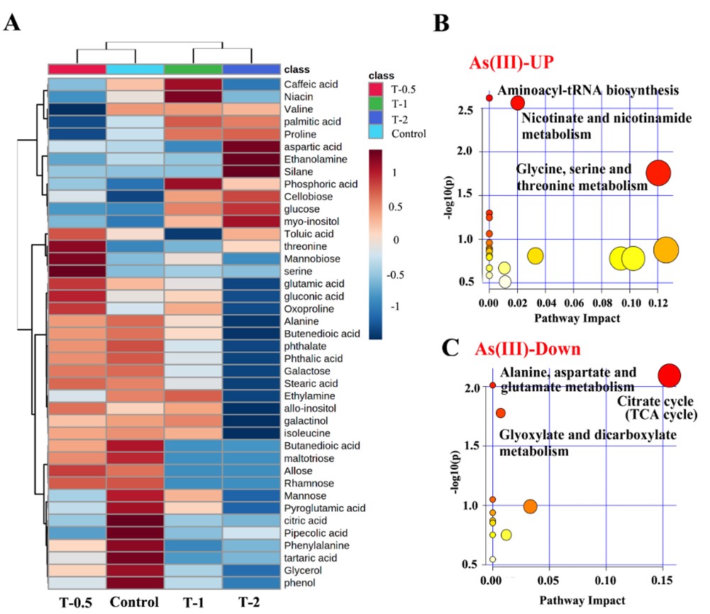 近日,农业农村部环境保护科研监测所环境危害因子风险评估团队在亚砷酸盐的产地作物毒性作用及机制方面取得了重要进展,系统研究了亚砷酸盐在代表性产地作物类群蔬菜中的积累、诱导的相关生理生化变化及代谢重分配机制,该研究为全面理解亚砷酸盐的作物危害及其风险早期预警诊断提供了科学技术支撑。
